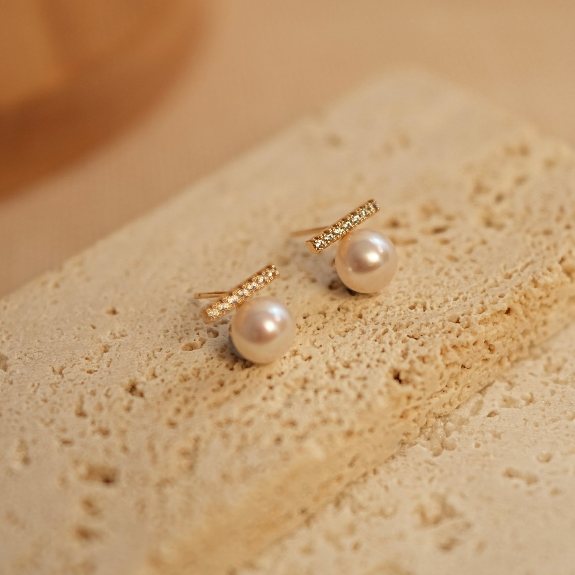 Balanced Zircon Natural Pearl Earrings