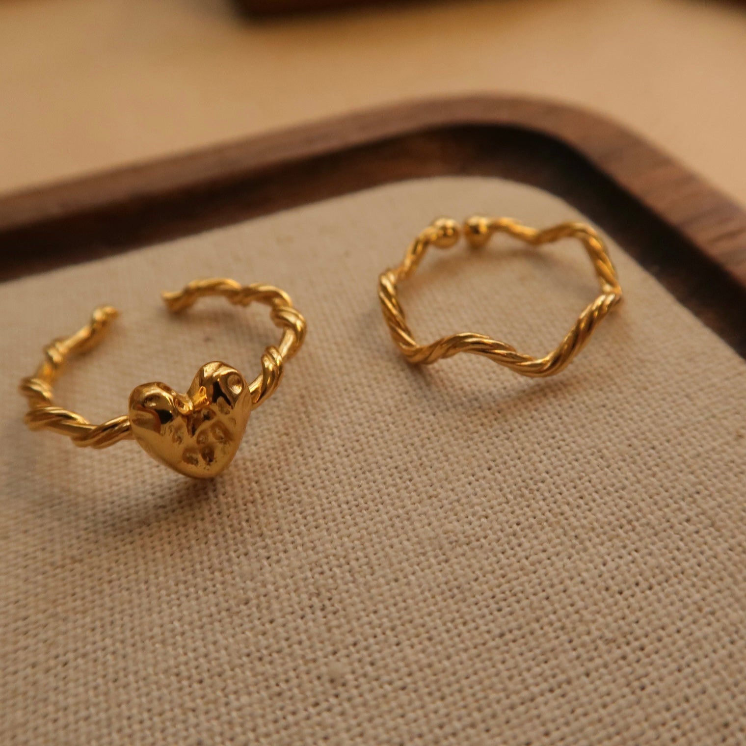 Golden Heart Wavy Open Ring