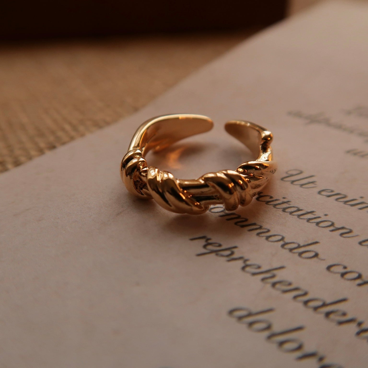 Golden Twining Rope Open Ring