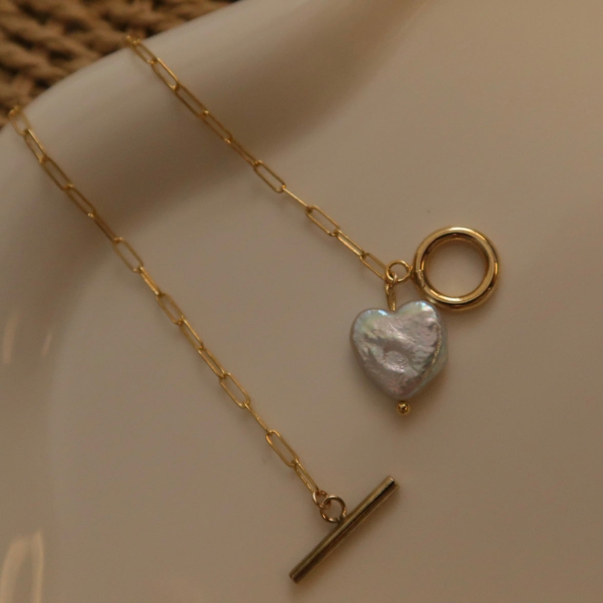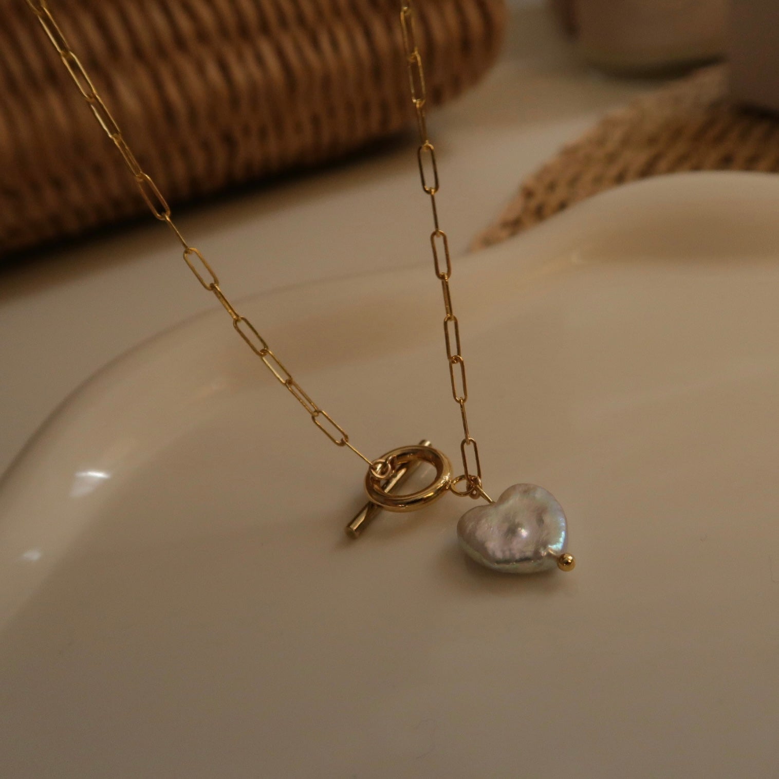 Be captivated by the mesmerizing allure of Santorini Sunset with our one-of-a-kind Baroque Pearl Necklace, featuring stunning heart-shaped pearls and a convenient OT lock for easy wear.
