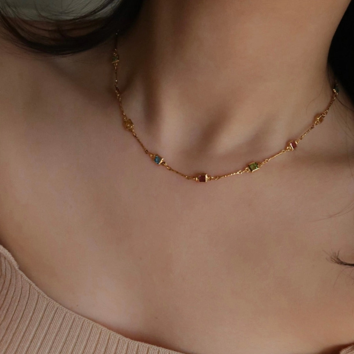 Introduce some summertime fun to your wardrobe with this unique and vibrant Rainbow Natural Stone Necklace and Bracelet. Made with premium zircon stones.