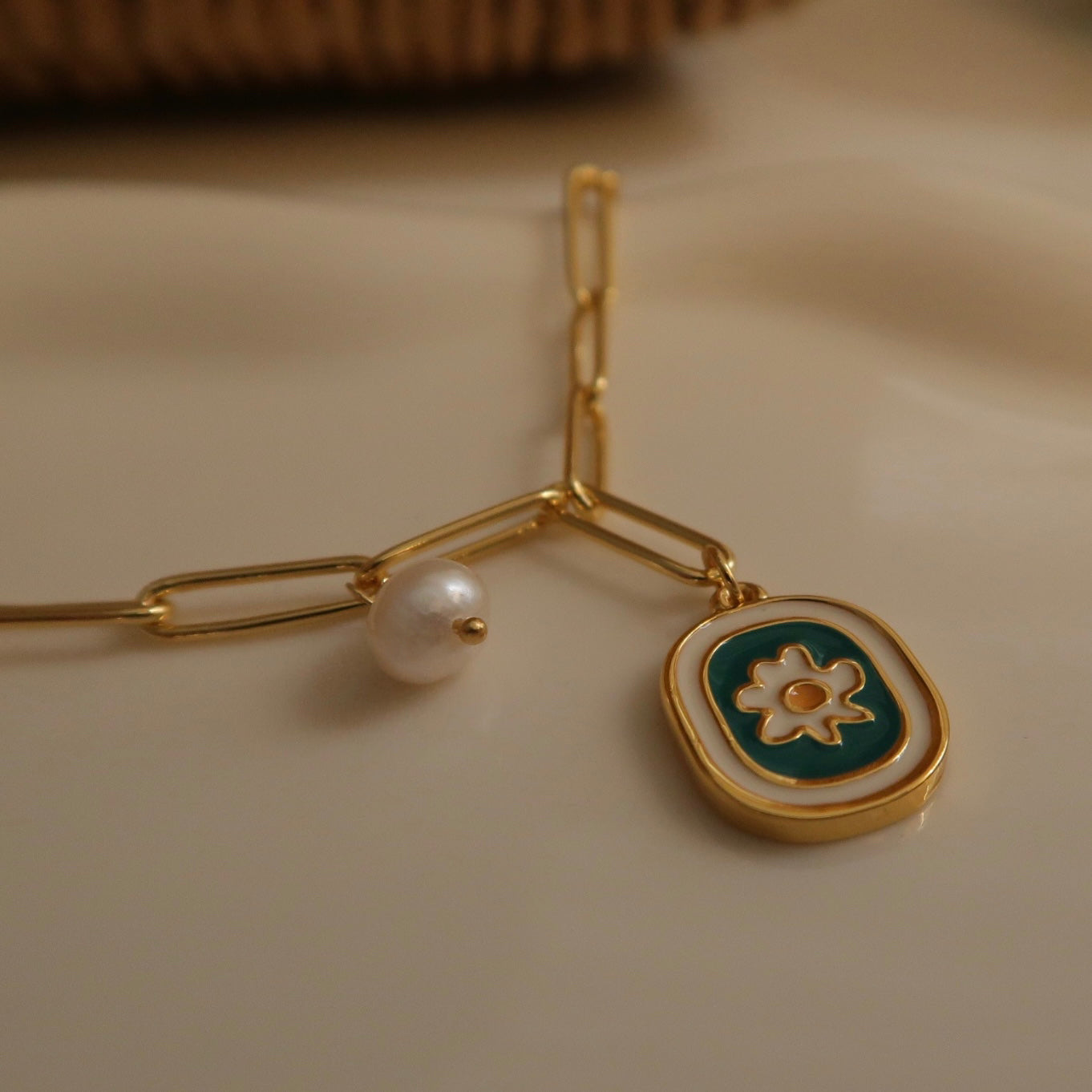 indulge yourself with the charming summer vibes of this necklace, featuring a delicate daisy flower design and genuine pearls.